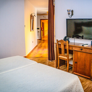Disfruta de una estancia cómoda y acogedora en nuestra habitación doble, disponible con cama matrimonial o dos camas individuales. Un espacio diseñado para el descanso, con todas las comodidades necesarias y un ambiente tranquilo, ideal para parejas, amigos o familiares que buscan confort y calidad en un entorno inigualable.